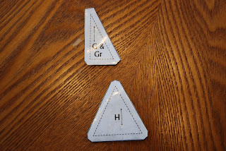 After making these I was able to use my rotary cutter to cut out my pieces, this was important because I had to cut 48 H templates and 48 G templates, flip that template over and cute 48 GR templates!