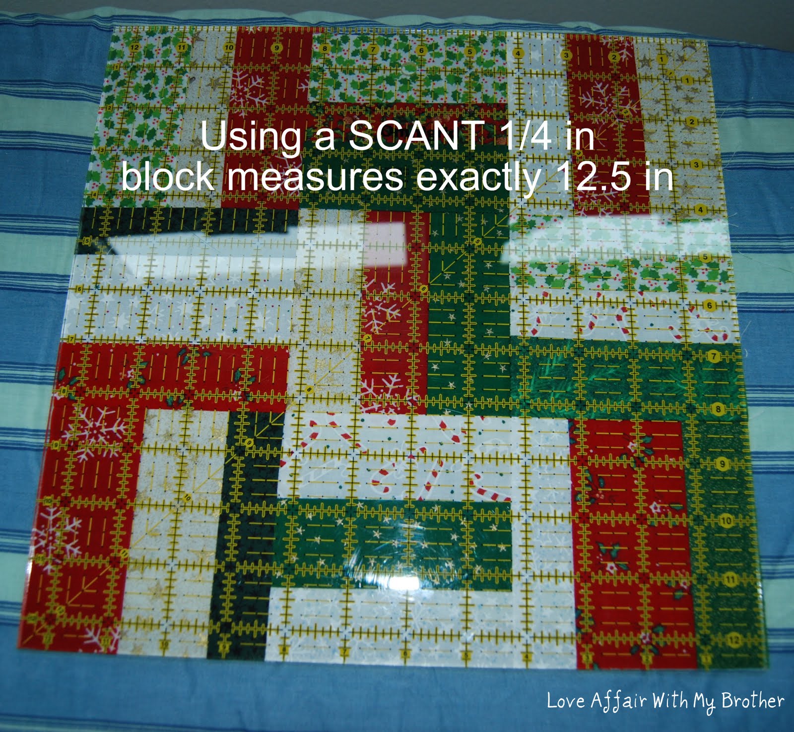 This block required NO trimming and measures exactly 12.5 inches square. Good luck figuring out the best method for you and your machine on getting a 1/4 in seam and a scant 1/4 in seam.