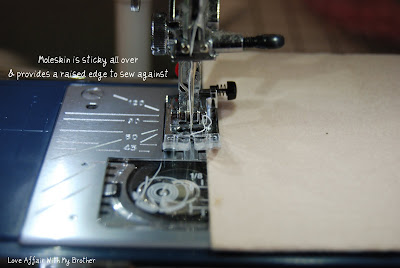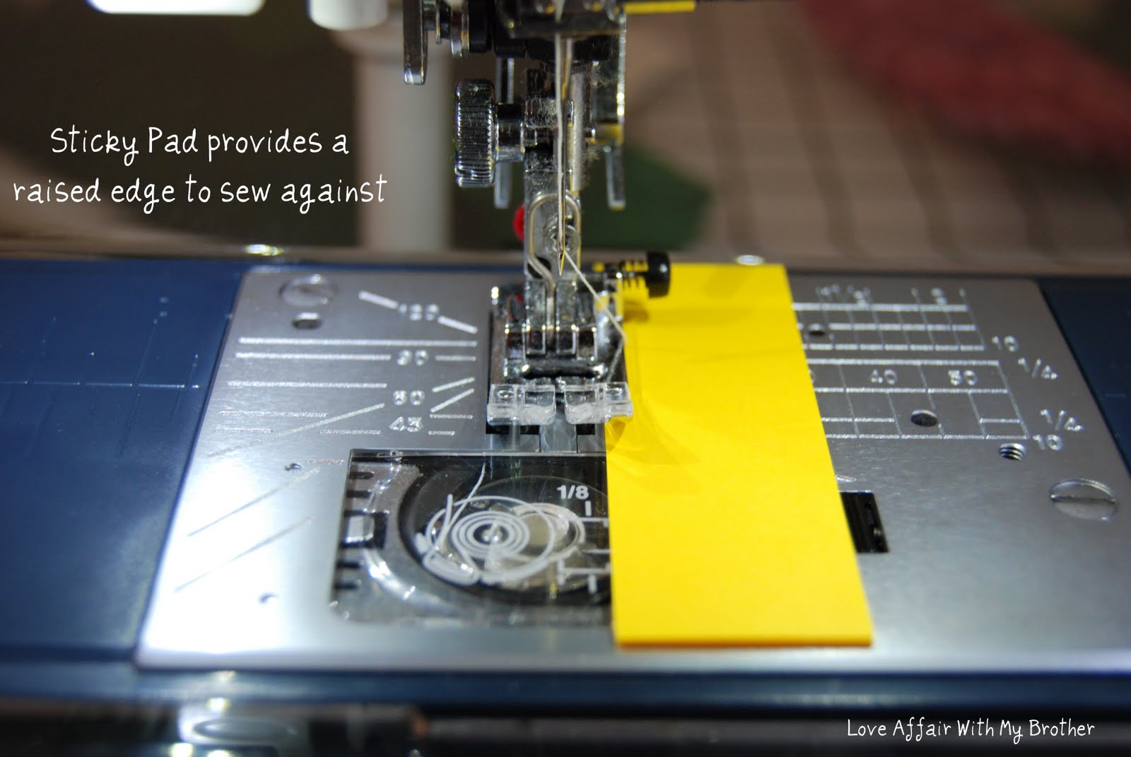 I LOVE moleskin for sewing a 1/4 inch seam. It is sticky all over on the bottom so when you put it on your machine it isn’t going anywhere. Sadly that is also the drawback, when you take it off to do other sewing it tends to leave a sticky residue that you will need to clean off before moving on to another project.