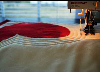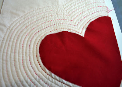 8. Pin and machine quilt as desired. I quilted 11 lines around the heart, each a quarter inch apart using a neutral colored thread.