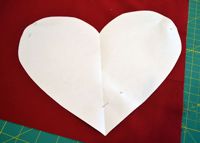 4. Lay out your quilt top and the heart. Place the heart in the desired position on the front of the quilt. I placed mine with part of the heart hanging off the front of the quilt.