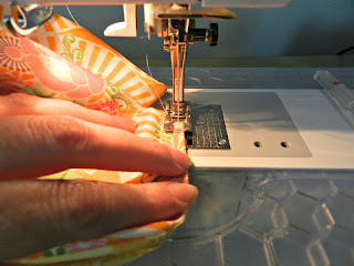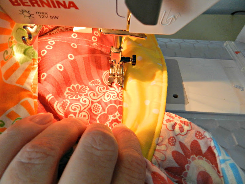 Turn inside out and topstitch the edge, again with the open toe foot.