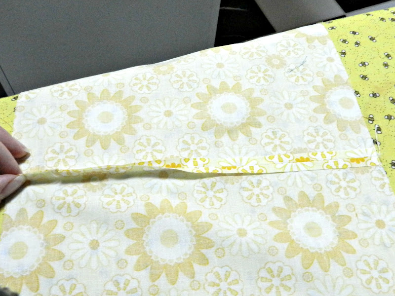 Layer all your drawstring pieces together and on the 8 1/2″ side